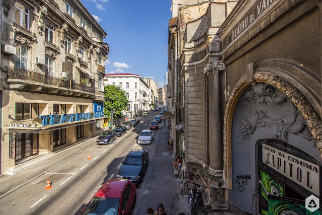 This summer we explored the colorful and positive messages of the Pisica Patrata universe in the series Pictăm Pereți (Painting Walls), where the artist made a character that seems to float, reminding the Japanese world of ukiyo-e (“pictures of the floating world”); at Street Delivery, a huge mural painting illustrating this edition’s theme “Grădini Posibile”(Possible Gardens); at Sibiu International Street ART Festival; in Tei, drawing attention, together with WWF, that in 2017, 24,000 hectares of virgin forests in Romania have entered UNESCO’s patrimony. On August 19, together with the feeder and Save or Cancel, he inaugurates the first Urban Signal from the Un-hidden Bucharest project – a totem produced by Câtpece and animated by Pisica Patrata, in the small Lente Garden, on Dionisie Lupu Street. One of the most interesting interventions by Pisica Patrata remains the treatment of Cinema Marconi façade, in 2016.
