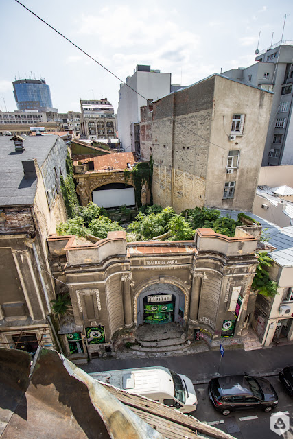 The new Pisica Patrata artistic intervention on the façade of the theatre re-uses the existing display system for commercials and the two windows, which replaced the original statues, anticipating the moment when the urban animals will be amused in the garden of the summer theatre. The new urban signal on Constantin Mille Street no. 13 sets itself apart in the continuous front, drawing gazes to the building, the work of 2016 and the manifest text, part of the intervention.