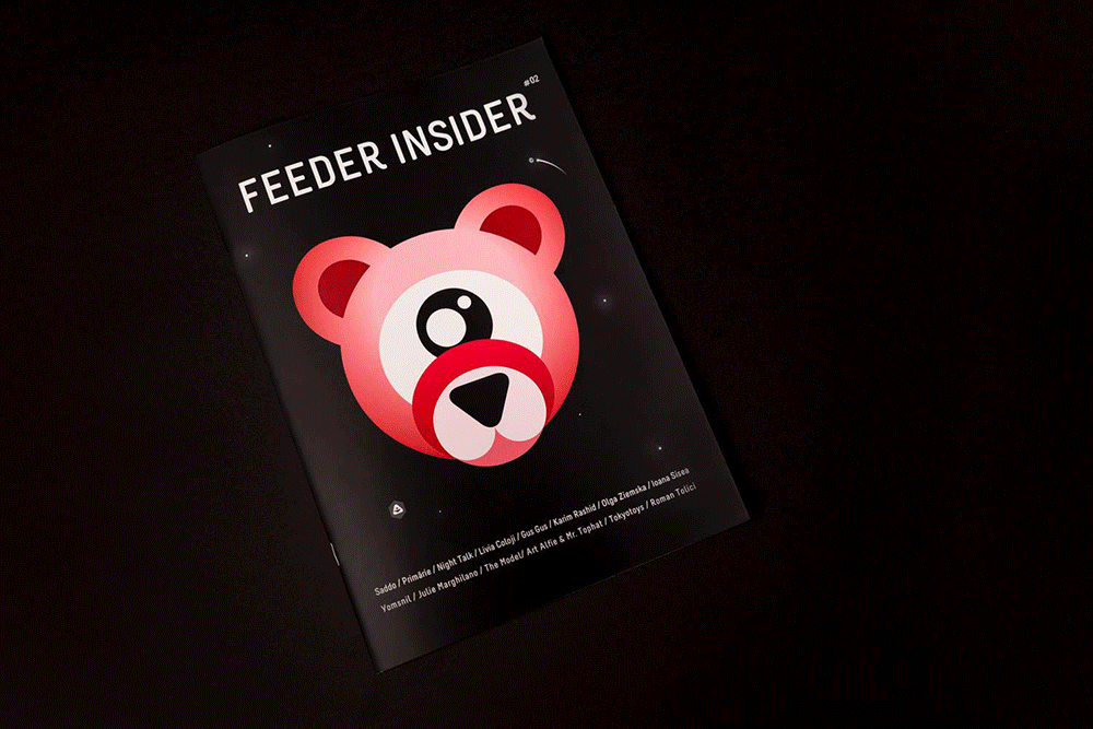 The feeder insider booklet 2.0 features interviews with Saddo, Primărie, Night Talk, Livia Coloji, Gus Gus, Karim Rashid, Tokyotoys, Olga Ziemska, Ioana Sisea, Yomsnil, Julie Marghilano, The Model, Art Alfie & Mr. Tophat, Roman Tolici.