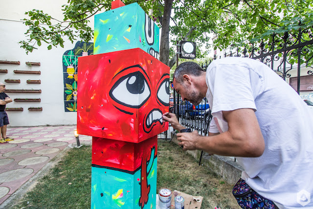 În grădina Lente, un obiect de lemn produs cu atenție de Câtpece s-a transformat într-un totem magic, pictat de Pisica Pătrată – imagini și video aici.