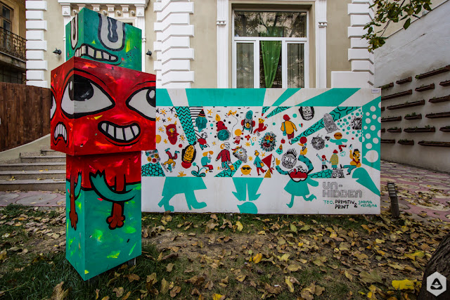 Povestea ilustrației și a personajelor care se întinde pe ambele fețe ale peretelui poate fi răsfoită într-un comix serigrafiat manual împreună cu Primitiv Print, care ne amintește despre trecerea timpului, îmbătrânirea sau măștile pe care le purtăm pe acest traseu.